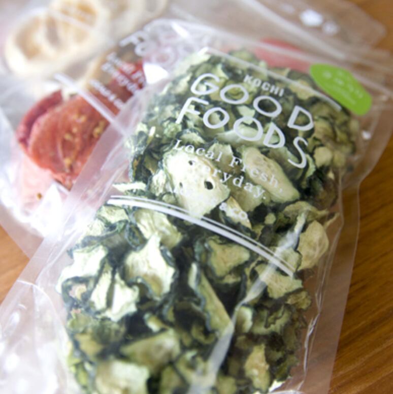 高知県産キュウリを天日干しとほぼ同じ温度で乾燥させ、旨味をギュッと凝縮させています。